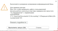 Бэкап не создатеся, далее вылетает ошбика блокировки, приходится удалять файл блокировки или запуск с параметрами делать, Доступ к папке есть, через конфигуратор в данный путь выгражается все нормально, проблема только с такими способом бэкапа Платформа 1С:Предприятие 8.3 (8.3.27.1859)