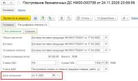 Поступление безналичных ДС, все даты проставлены 24.11.2025 (скриншоты 1 и 2).